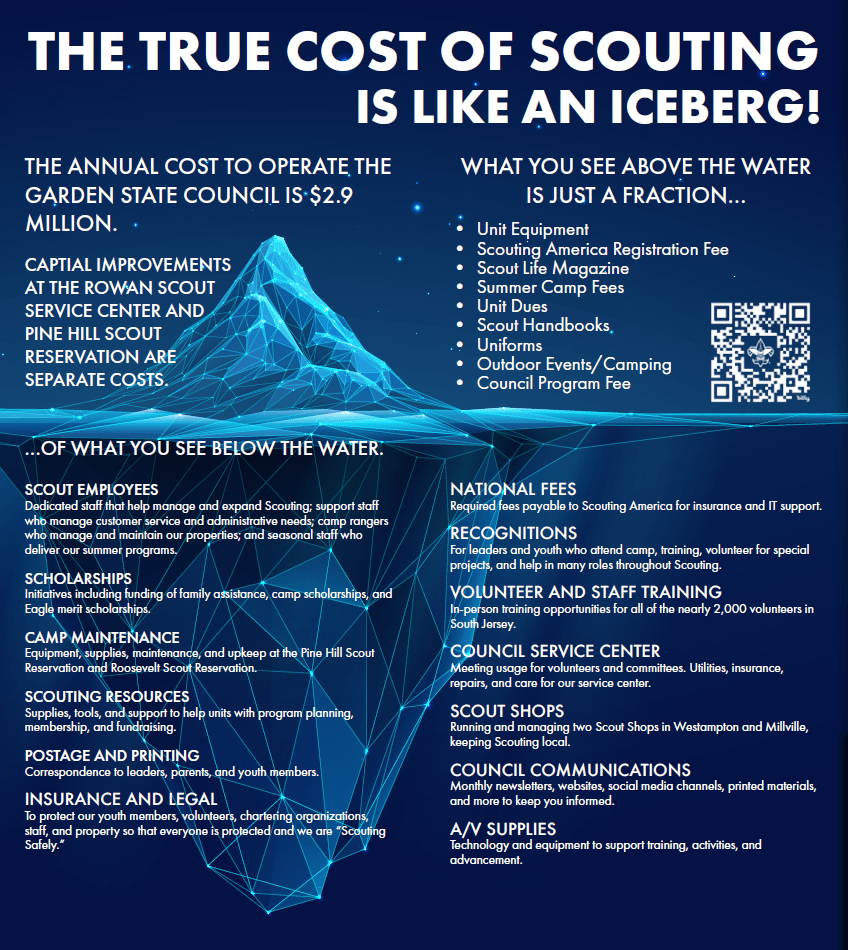 To help cover increasing expenses, the Council Executive Board decided to increase the Council Program Fee. Thanks to continued support from funders like the Henry M. Rowan Family Foundation and the Garden State Boy Scout Foundation, the changes are modest.