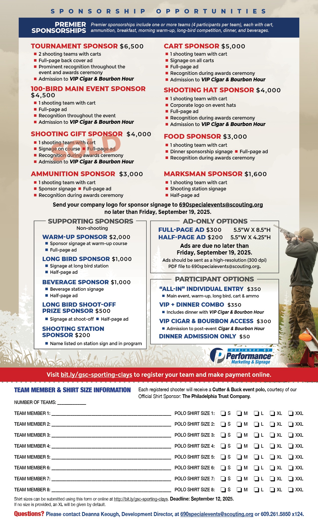 - Cutter & Buck event polo (shirt sizes due by September 12)