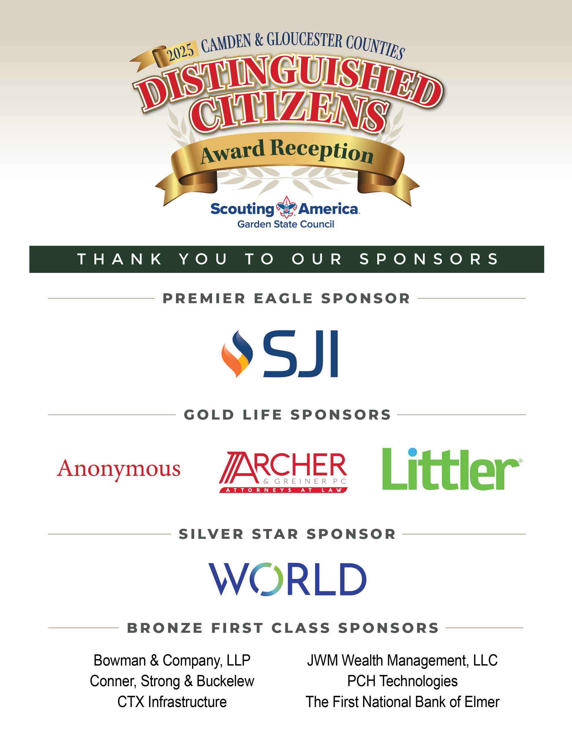 The evening included remarks, introductions, and the presentation of the Distinguished Citizen Award, highlighting each honoree’s contributions to Camden and Gloucester counties. Support from sponsors and attendees helped raise important funds that keep Scouting programs strong for more than 4,500 youth each year, including those served through our ScoutReach initiatives in underserved communities.