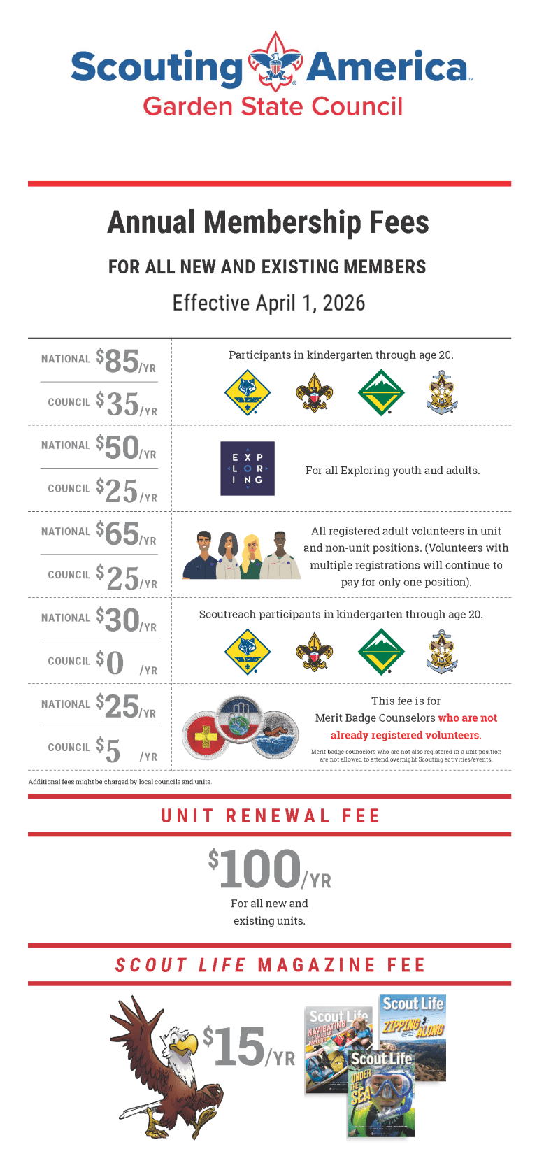 The Garden State Council Program Fee will be adjusted effective April 1, 2026. Please see the membership fee infographic. Please review details below for further context.
